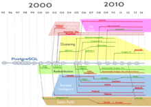 - ↑ PostgreSQL 14 Press Kit. The PostgreSQL Global Development Group, 30. September 2021, abgerufen am 24. Oktober 2021 (deutsch).