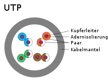Twisted-Pair-Kabel enthalten Adernpaare aus je zwei miteinander verdrillten (englisch twisted) Paaren (englisch pair ‚Paar‘) von Einzeladern.