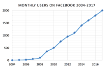 Das 2004 gegründete[6] Netzwerk zählte nach eigenen Angaben im 1. Quartal 2022 rund 2,9 Milliarden Mitglieder, welche die Seite zumindest einmal pro Monat besuchten.[7] Laut Alexa liegt Facebook im 4. Quartal 2020 weltweit auf Rang 8 (2016: 3, 2019: 4, 2020: 7) sowie deutschlandweit auf Rang 20 (2016: 6, 2019: 7, 2020: 15) der meistbesuchten Websites. Noch im Mai 2017 verzeichnete es nach anderen Statistiken in Deutschland 30 Millionen aktive Nutzer,[8] diese Zahl sank bis Ende 2019 aber auf 25,9 Millionen.[9]