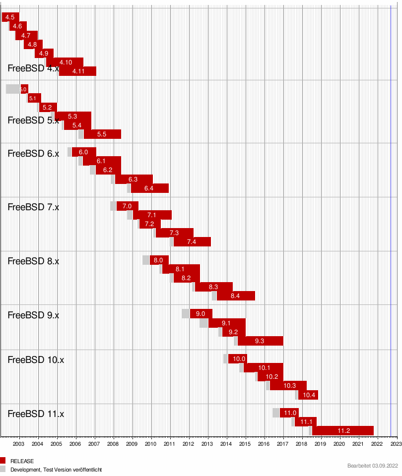 - ↑ FreeBSD 13.1-RELEASE Announcement. 16. Mai 2022 (englisch, abgerufen am 16. Mai 2022).
