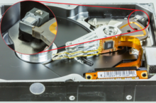 - jeweils einem Lager für die Spindel (meistens hydrodynamische Gleitlager) sowie für die Aktorachse (und somit die Schreib-Lese-Köpfe) (auch Magnetlager),