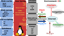 Da Linux beliebig angepasst und optimiert werden kann, hat es sich auch in Rechenzentren stark verbreitet, in denen speziell angepasste Versionen auf Großrechnern, Computerclustern (siehe Beowulf) oder Supercomputern laufen.