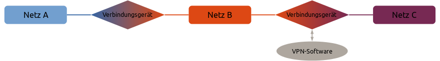 In der Beispielabbildung könnte Netz A ein Heimnetzwerk sein, Netz B das Internet und Netz C